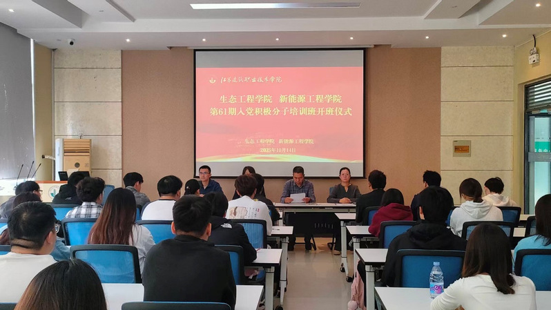 为了强化入党积极分子思想政治建设,提升党务工作专业化水平与实践效能,2025 年 10 月 14 日,生态工程学院与新能源工程学院联合举办的第 61 期入党积极分子培训班开班仪式,在建筑技术馆 202 教室隆重举行。