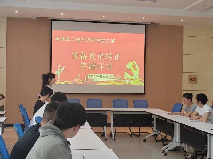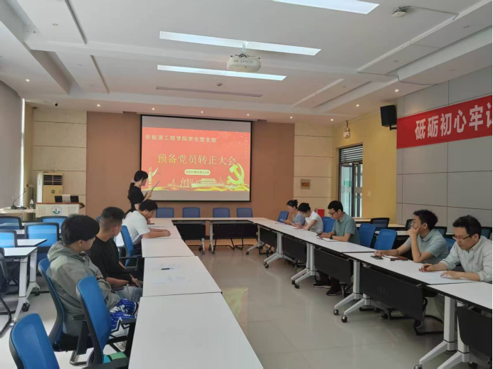为扎实推进学生党员队伍建设,切实做好学生党员培养教育工作,6月25日,新能源工程学院学生党支部召开预备党员转正大会。会议由党支部组织委员李璐璐主持,5名正式党员和全体预备党员参会。