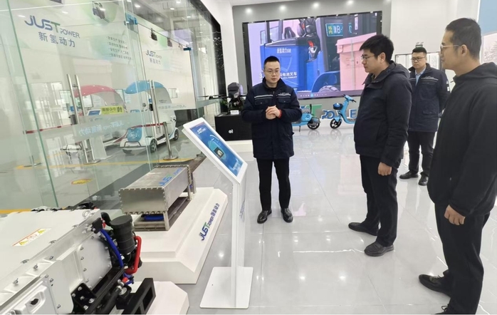 座谈会上,沛县新氢动力科技有限公司总经理张凯对学院代表的到访表示诚挚欢迎,并详细介绍了公司作为国内首批聚焦氢能工业车辆燃料电池技术应用的企业,在氢能燃料电池生产基地建设方面的成果。他特别提到公司自主研发的“精卫氢服”固态金属储氢技术,该技术实现了氢气“运、储、加、用”环节的一体化解决方案,是全球首款在工业车辆领域批量应用的固态金属储氢技术。张凯表示,希望与学院在氢能技术研发、人才培养等方面建立深度合作。