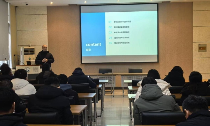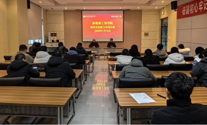 为提升教师实践教学实验实训安全管理能力,2026年1月19日上午,新能源工程学院举实践能力培训开班仪式并开展实验实训安全教育讲座。开班仪式由副院长张传金主持,学院全体教职工参加。